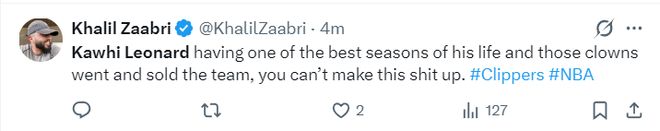 NBA记者Khalil Zaabri赛后写道:卡哇伊打出了职业生涯最高光的一个赛季,但快船管理层那些蠢材却送走了多位核心球员,这简直太荒唐了。