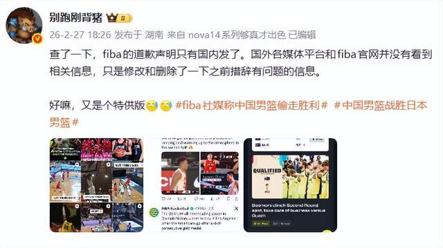 欺人太甚!FIBA道歉,却为国内特供版,官网+国外社媒无相关内容